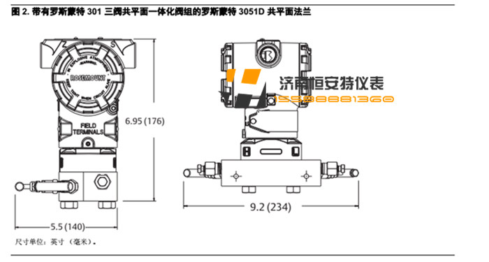 罗斯蒙特3051DP差压变送器配三阀组尺寸图