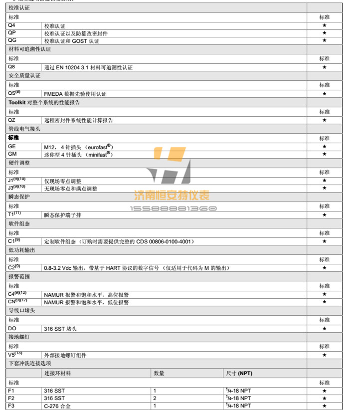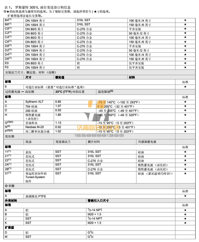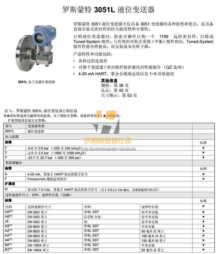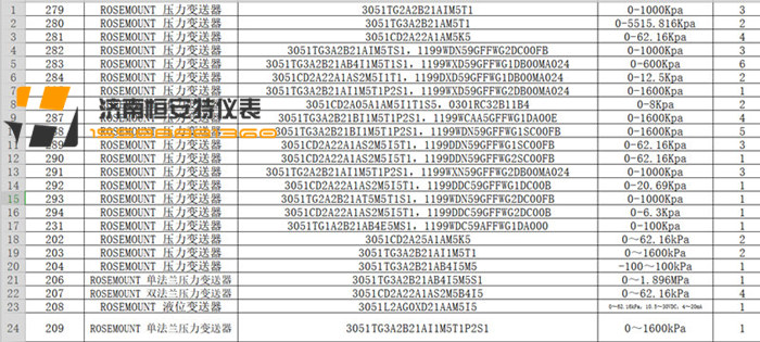 济南恒安特仪表罗斯蒙特单法兰变送器现货库存表: